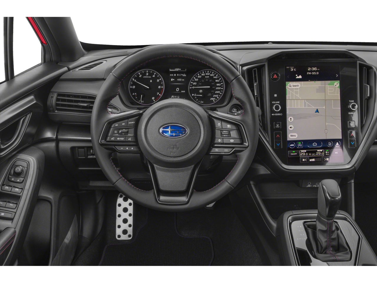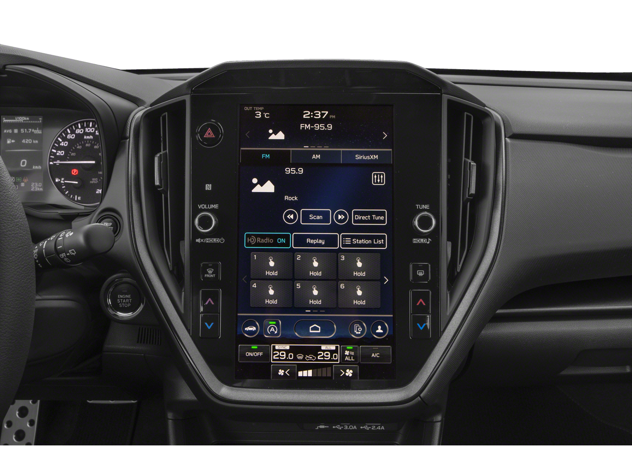 - Radio: Subaru 11.6" Multimedia Plus System -inc: valet mode, AM/FM stereo, HD Radio, multi-touch gesture high resolution display screen, voice activated controls, Bluetooth® audio streaming and hands-free phone connectivity, Bluetooth® hands-free SMS text messaging connectivity, iPod control capability, smartphone integration: wired and wireless Android Auto w/full screen view, wireless Apple CarPlay w/full screen view and wireless connection, USB and Over The Air (OTA) audio system update, audio system and Bluetooth® steering wheel control switches, 6 speakers (2 dash panel tweeter, 2 front door, 2 rear door), illuminated 3.5mm auxiliary input jack, illuminated USB A and C input charge ports, roof mounted satellite and connected services, roof mounted black antenna, connected services operation indicator, SOS emergency assistance (red button) and ehanced roadside assistance (blue i-button)